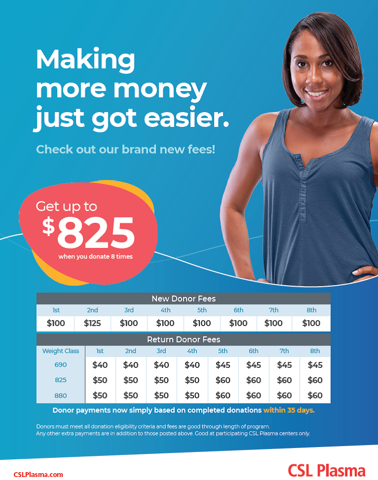 tlvi.billhallman.shop 2021. 12. 5. · 1st Donation: $100... 2nd Donation: $125... 3rd-8th donation: $100. After 8th donation, pay drops to $45-60 per donation depending on your weight. Csl 50 dollar coupon - kksyy.meryembasar.de · CSL Plasma Coupon Get Extra $20 Bonus - Hiappleton. Coupon for CSL Plasma. *All eligible, qualifying new contributors will get an additional $10 bonus. Within a 30-day period, CSL Behring CSL Behring is a biotechnology company headquartered in the King of Prussia, PA area with 10000+ employees. Close - nbndb.marstube.shop Sep 07, 2021 · Csl Plasma Bonus Coupons 2021 Get 20% Off. Get $20 Extra With CSL Plasma Coupon-New Bonuses & Rewards As a result, you'll get a total of $20 in donor bonus coupons. Now is the time to get the discount code. Your discount code must be scanned by the CLS Plasma staff.. decommissioned submarines for sale 72 bus price